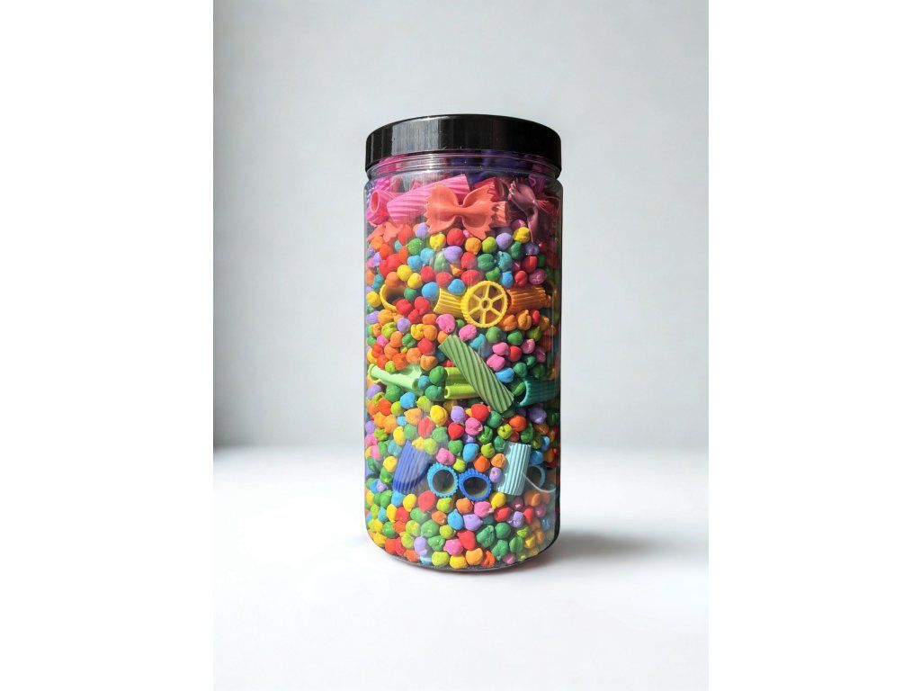 Senzorický mix z cizrny a ručně malovaných těstovin. Baleno v dóze 1500 ml.