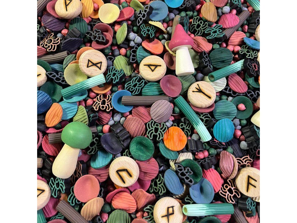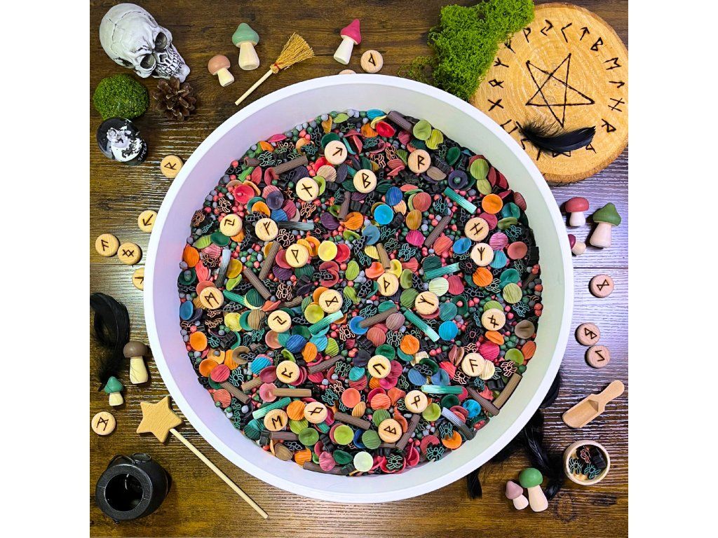 V tomto mixu jsou malé tajemné symboly lesa, které děti mohou objevovat, hledat a vymýšlet k nim vlastní příběhy. A vše může sloužit jako ingredience pro ty nejzajímavější lektvary 🧪