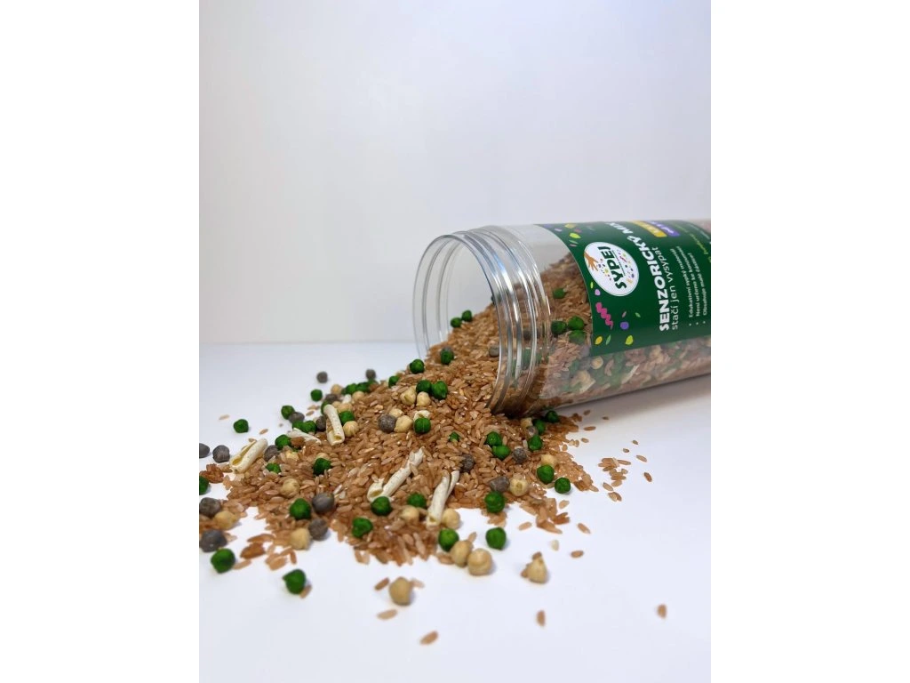 Senzorický mix z rýže, cizrny, těstovin a doplňků. Baleno v dóze 1500ml.