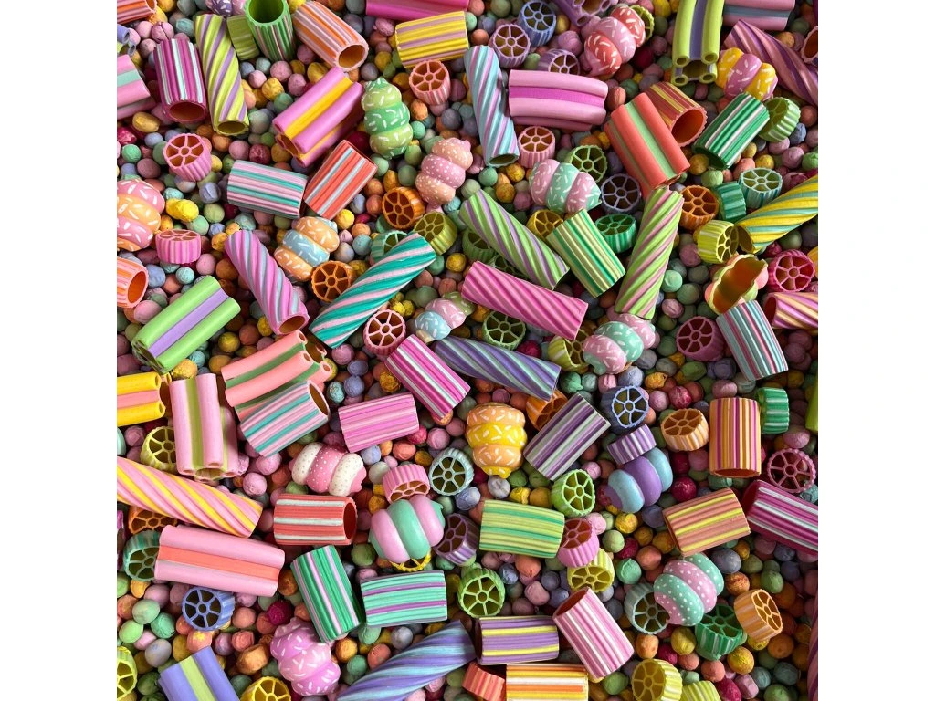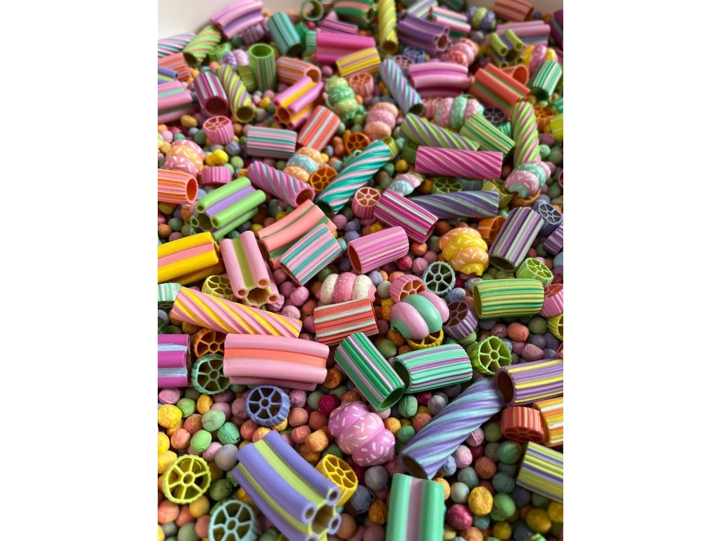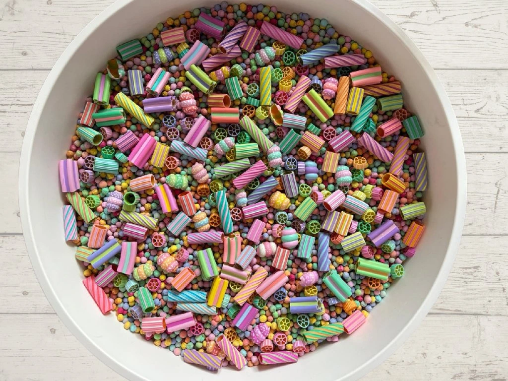 Nejsladší senzorický mix, jaký jste kdy viděli! Pro menší děti ideální na třídění podle tvarů nebo barev či klasické pohrabáníčko. Pro starší pak může sloužit při hře na cukrárnu, stánek na pouti nebo třeba na narozeninové oslavě!