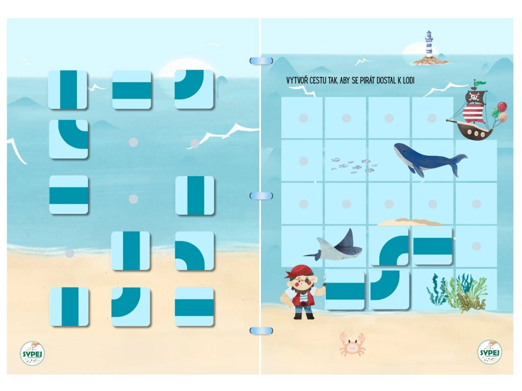 Interaktivní sešit plný PIRÁTŮ! Sešit formátu A4 obsahuje 10 různých cvičení na téma u dětí velmi oblíbené - a tak mohou pomoci přiřadit podle barev správného piráta k jeho lodi, seřadit posádku podle velikosti, odemknout truhly s pokladem nebo poznat mořské tvory podle stínu. A ještě mnohem víc!